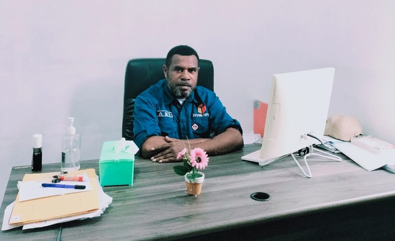 Divisi Hukum Pencegahan, Partisipasi Masyarakat dan Humas Bawaslu Kaimana Malik Furu Saat Dikonfirmasikan Terkait Kegiatan Latsar PPPK di Ruang Kerjanya di Kantor Bawaslu Jalan Utarum Bantemi Kaimana