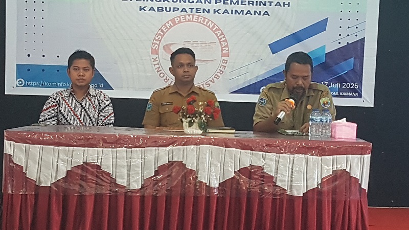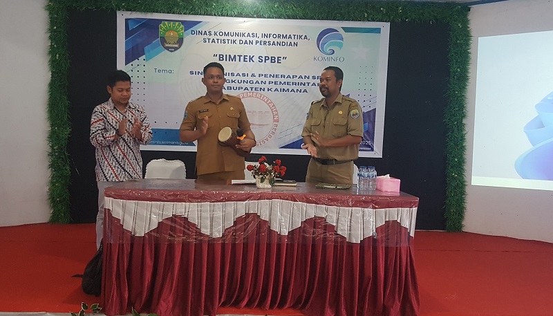 KOMINFO KAIMANA – Dinas Komunikasi Informatika Statistik dan Persandian Kabupaten Kaimana menggelar kegiatan Bimbingan Teknis (Bomtek) Sistem Pemerintahan Berbasis Elektronik (SPBE) dengan tema “Sinkronisasi dan Penerapan SPBE Di Lingkungan Pemerintah Kabupaten Kaimana”. Acara ini dibuka Oleh SEKDA Kaimana yang diwakili Asisten I Sekda Kaimana Yacob Ahimza Irre Warere, S.STP, M.M Pada Hari seni (15/07/2025) bertempat di Kafe Belia, Jalan Utarum Kaki Air Kecil Kaimana.