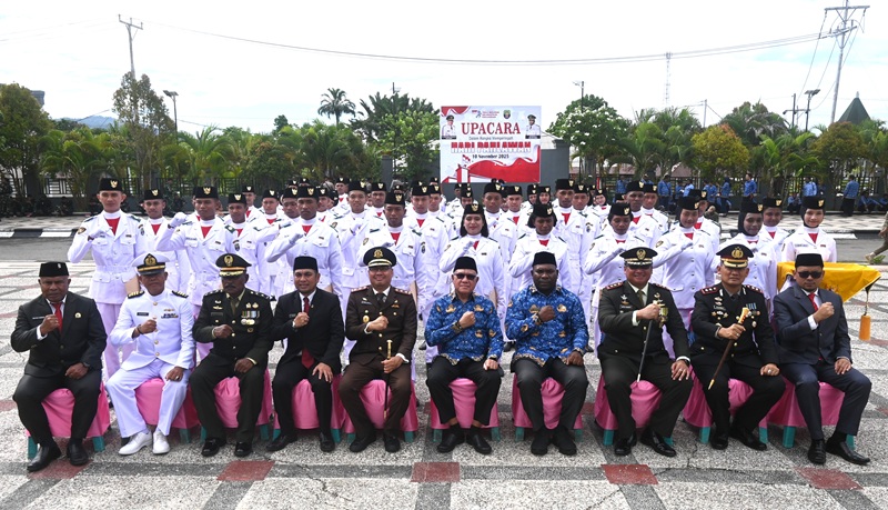 Foto  Bupati dan Wakil Bupati Kaimana Bersama Anggota Forkopimda bersama Purna Tugas Paskibra Usai Upacara Hari Pahlawan yang di Pusatkan di Halaman Apel Kantor Bupati Kaimana.