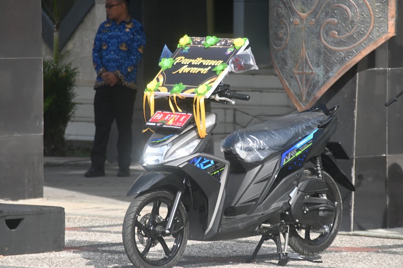 KOMINFO KAIMANA – Usai pelaksanaan Apel Hari Kesadaran Nasional yang digelar di halaman apel Kantor Bupati Kaimana, Pemerintah Kabupaten Kaimana menerima penghargaan dari BPJS Kesehatan berupa satu unit sepeda motor operasional yang diserahkan pada hari Jumat (17/10/2025) di halaman Apel Kantor Bupati kaimana.