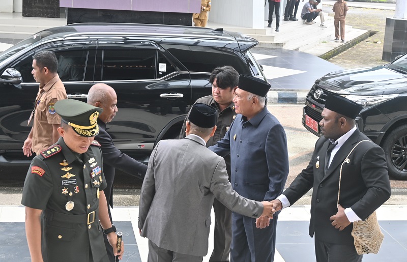 Hadir dalam penyampaiaan Nota Pengantar atas Rancangan Peraturan Daerah (Ranperda) tentang Rencana Pembangunan Jangka Menengah Daerah (RPJMD) Kabupaten Kaimana Tahun 2025–2029, Bupati Kaimana Drs. Hasan Achmad, M. Si, didampingi Wakil Bupati Kaimana Isak Wariensi, S. Tr., Pimpinan dan Anggota DPRK Kaimana, serta jajaran Forkopimda, Sekretaris Daerah, para Asisten, Kepala OPD, Tokoh Masyarakat, dan undangan lainnya.