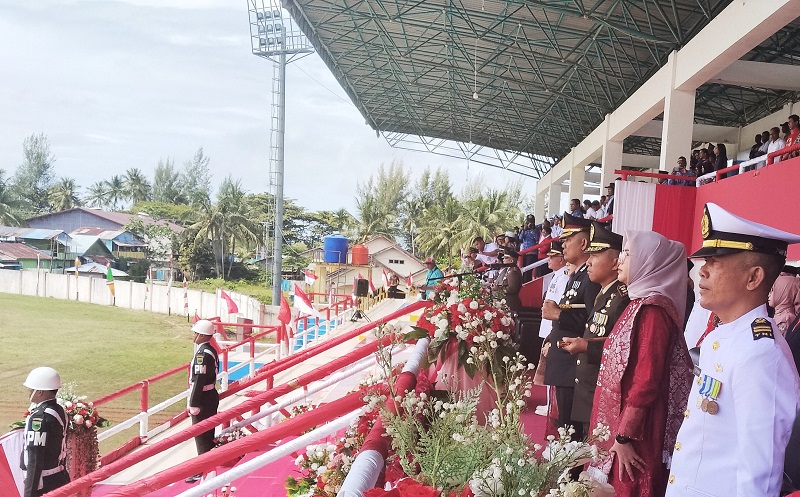 Bupati Kaimana Drs. Hasan Achmad, M. Si., sebagai Inspektur Upacara Pada Peringatan Detik-detik Proklamasi dan Pengibaran Bendera pada HUT RI Ke – 80 yang dipusatkan di Stadion Triton Kaimana